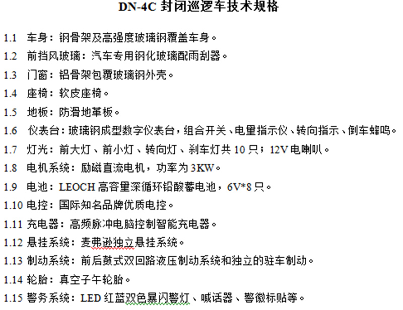 电动巡逻车(DN-4A-3)技术参数