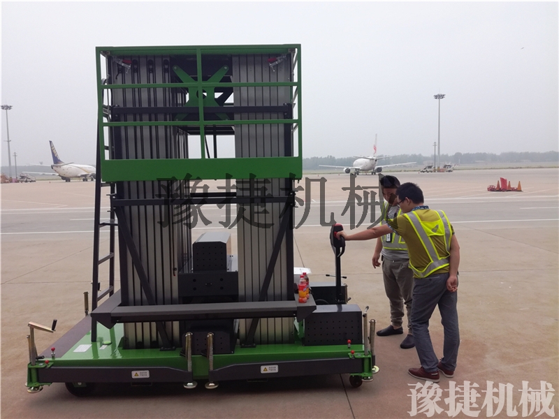 桅铝合金升降平台:采用优质高强度铝合金材料,具有造型美观、体积小、重量轻、升降平稳、安全可靠等优点。广泛用于工厂、宾馆、餐厅、车站、影剧院、展览馆等场所,是保养机具、油漆装修、调换灯具、电器、清洁保养等用途的理想安全伴侣。